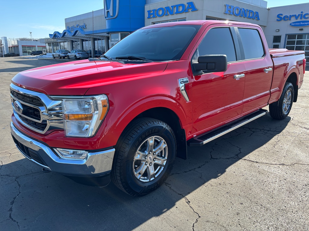 Welcome to Battle Creek Honda!! You can contact us at (269)965-2205. This 2022 Ford F150 XLT 4x4 comes equipped with 5.0L V8, Automatic Transmission, Air Conditioning, Cruise Control, Tilt Wheel, Power Windows, Power Locks, Power Mirrors, Alloy Wheels, AM/FM/XM Radio, Keyless Entry, 4-Wheel Drive, Navigation System, Running Boards, Hard Top Tonneau Cover, Backup Camera and Much More!! Don't Delay Call Battle Creek Honda Today For Details!!